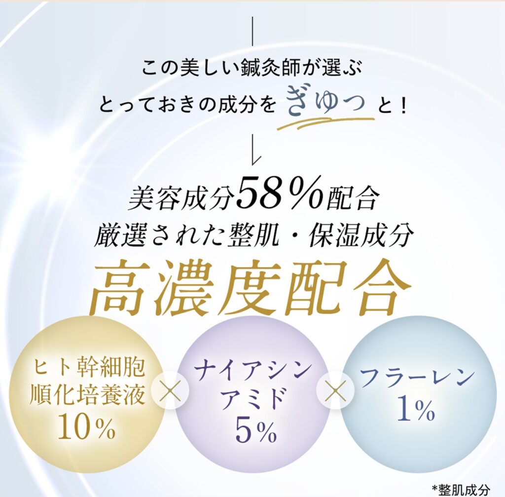 • 人気成分(ヒト幹細胞順化培養液・ナイアシンアミドなど)を高配合